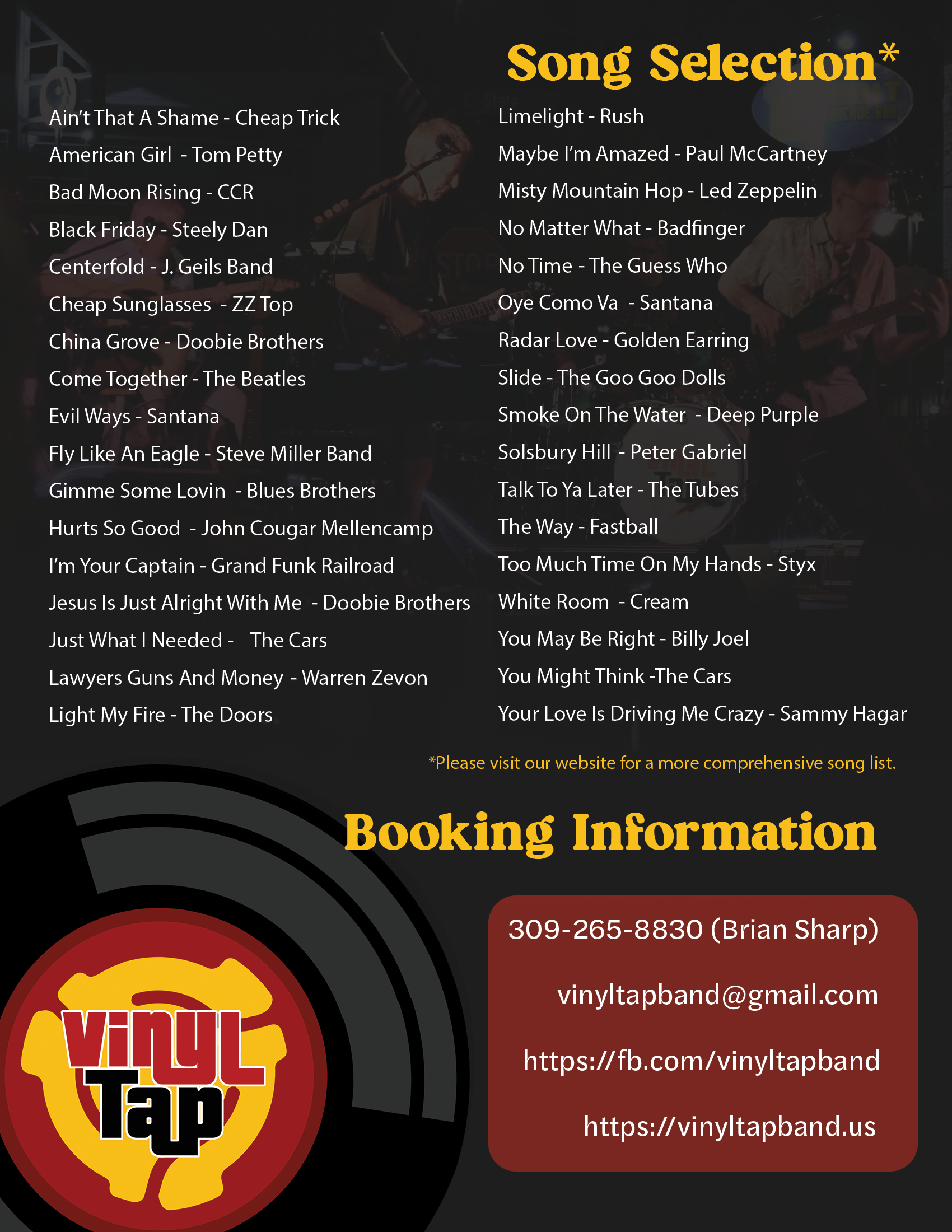 Our complete repertoire of classic rock hits spanning multiple decades.